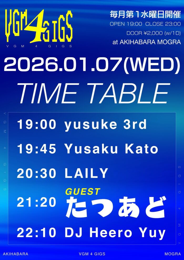 “VIDEO GAME MUSIC ✖️ CLUB MUSIC”をコンセプトに掲げる『VGM 4 GIGS』が毎月第一水曜に復活!大きい音で沢山ゲームミュージックを聞ける!いいイベント!