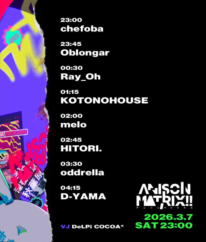 アニソンDJイベント「かっこいいアニソンがかかるイベント」は、その名の通り、かっこいいアニソンだけがノンストップでかかるDJイベント!オタクな街のかっこいいクラブで、最高にかっこいいアニメグルーヴをお届けします!