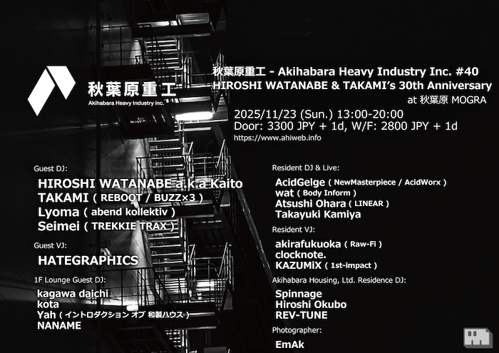 HIROSHI WATANABE & TAKAMI’s 30th Anniversary at MOGRA (Akihabara, Tokyo)