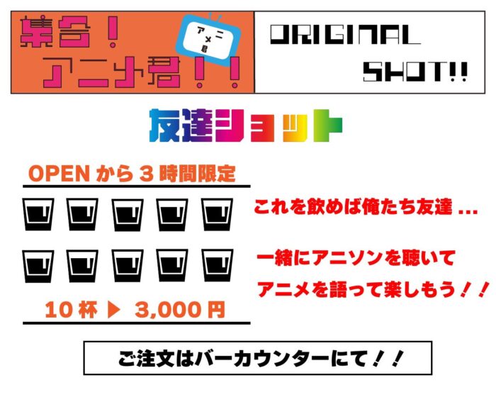 王道として誰もが知ってるアニソンから今流行っている熱いアニソンまで、酒を飲んで全身で聴きたい!に応えるイベント