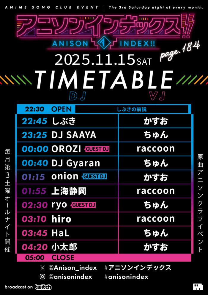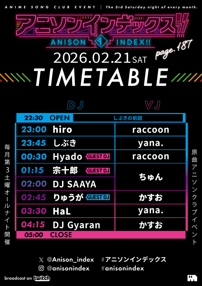 毎月第3土曜日はアニソン原曲クラブイベント『アニソンインデックス!!』